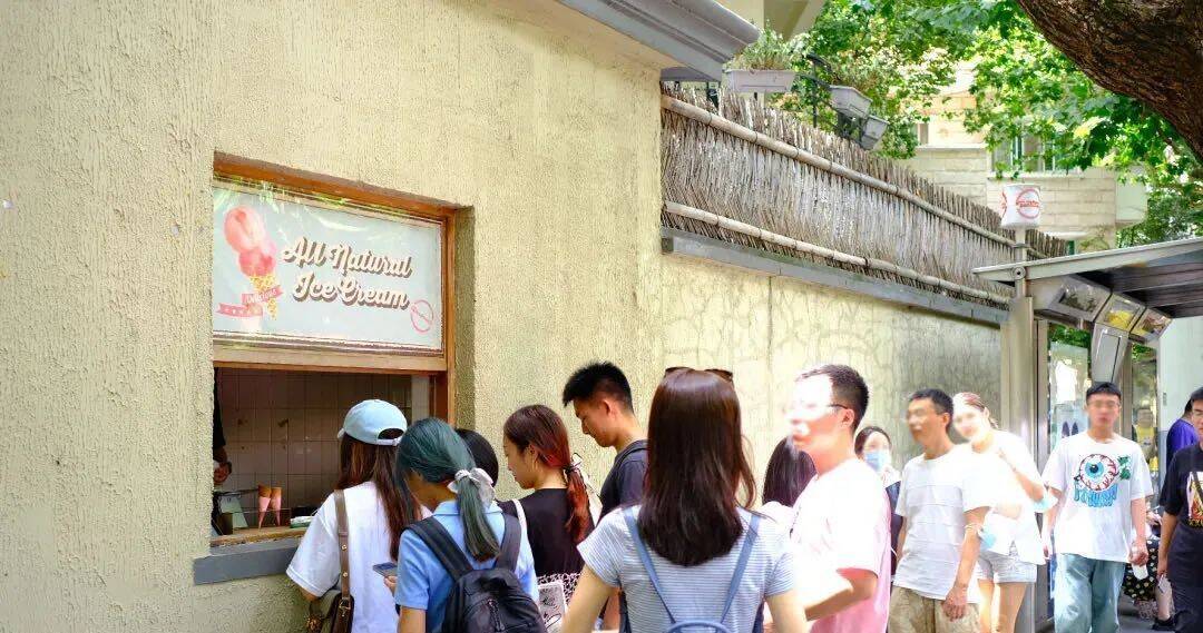 即便是小小的冰淇淋店,因独特的地理位置也是火起来了。吃一个冰淇淋就要排上一波长长的队伍