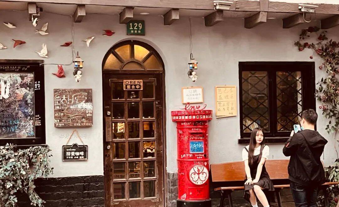 这里不止有红色的墙,还有红色的房子以及甜爱咖啡屋。这不是普通的咖啡店,建造年限在1999年,可以说是一直伴随着小马路