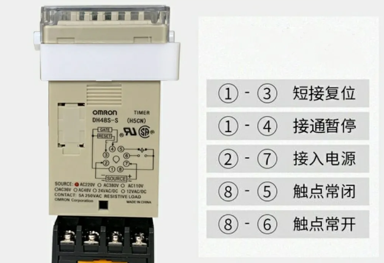 连续循环时间继电器有一组延时触点、复位、暂停功能。