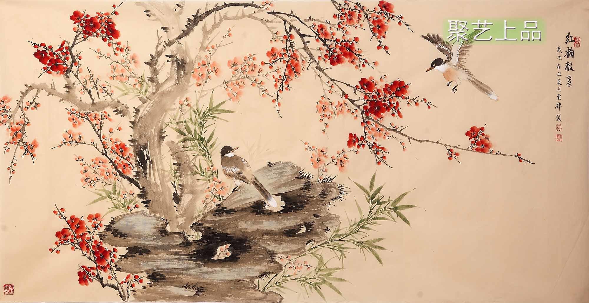 梅花凌寒飘香,花语是坚强,高洁,有傲骨之风,古人云“梅俱四德,出生蕊为元,开花为亨,结子为利,成熟为贞”,不愧为花中四君子之首,所以在家里挂一幅梅花为主题的挂画,可以凸显家主人的君子气质,高尚品质。