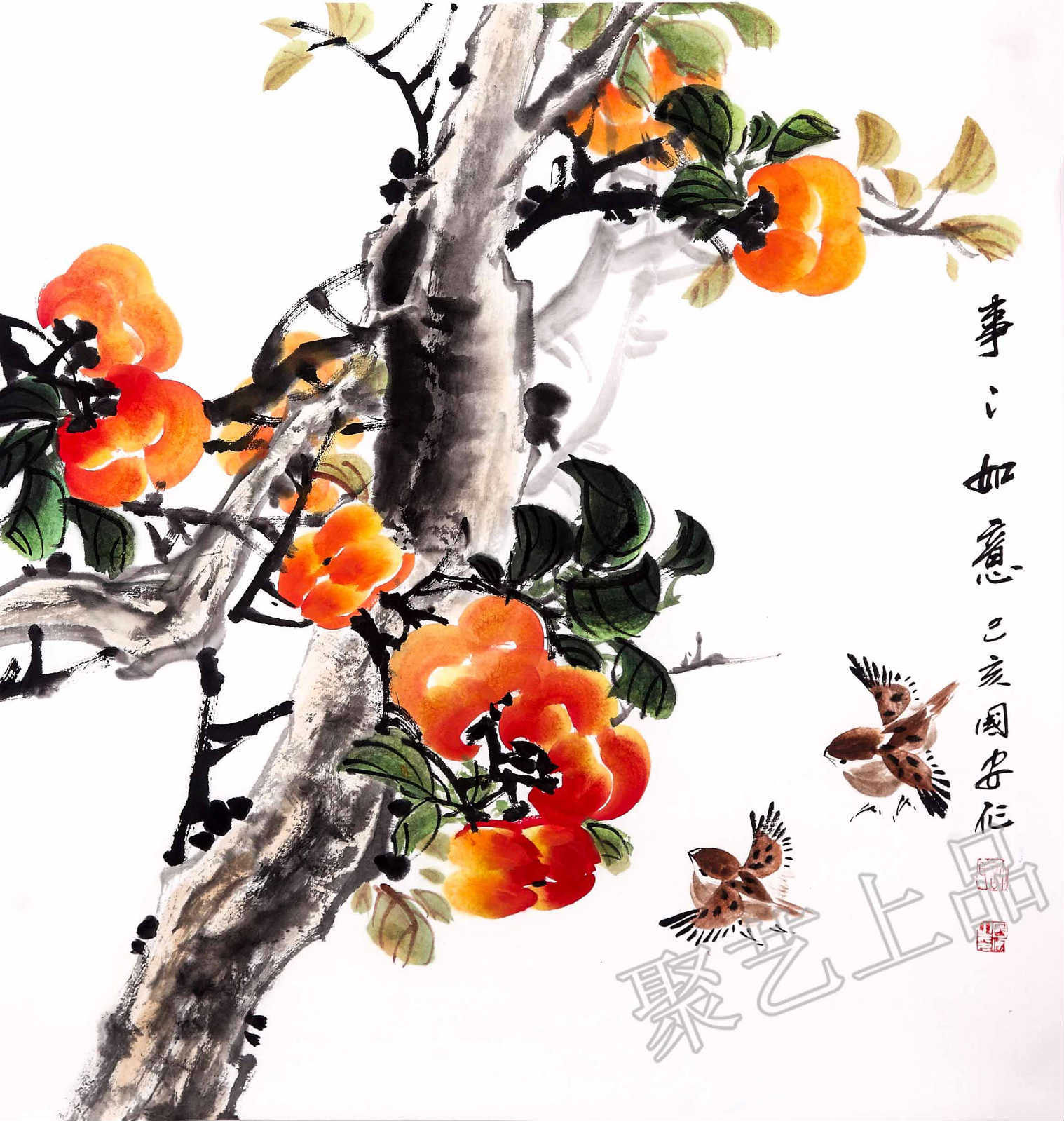 柿子这种水果我想大家都有吃过,尤其是在金秋九月,就是柿子成熟的日子,红红的“柿子”果就像红灯笼似的挂满枝头,吉祥又喜庆。在中国传统文化中,“柿子”也是一种吉祥的题材有着“事”同音,寓意红事(红柿)当头、事事(柿柿)如意的红美好的象征。