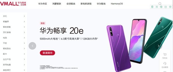 10月19日,手机中国在华为官方商城上发现,华为畅享20e已经在华为官方商城上架,其海报也被安排在了比较明显的位置。