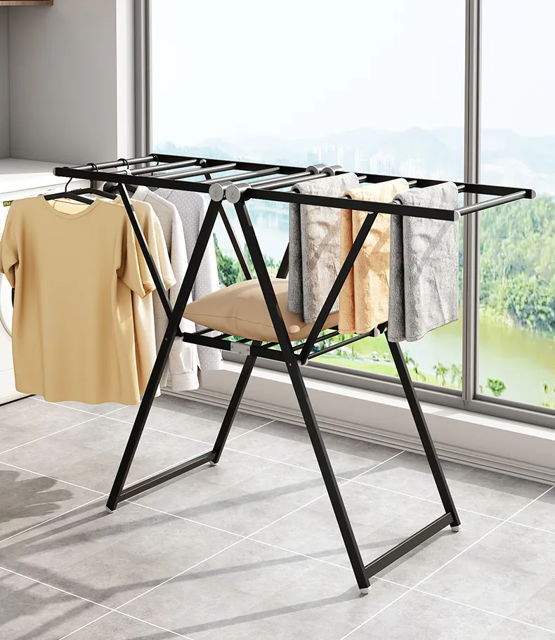2. 可折叠落地晾衣架:需要晾晒的时候拿出来,不用的时候就收起来,搬运灵活,也不占空间;