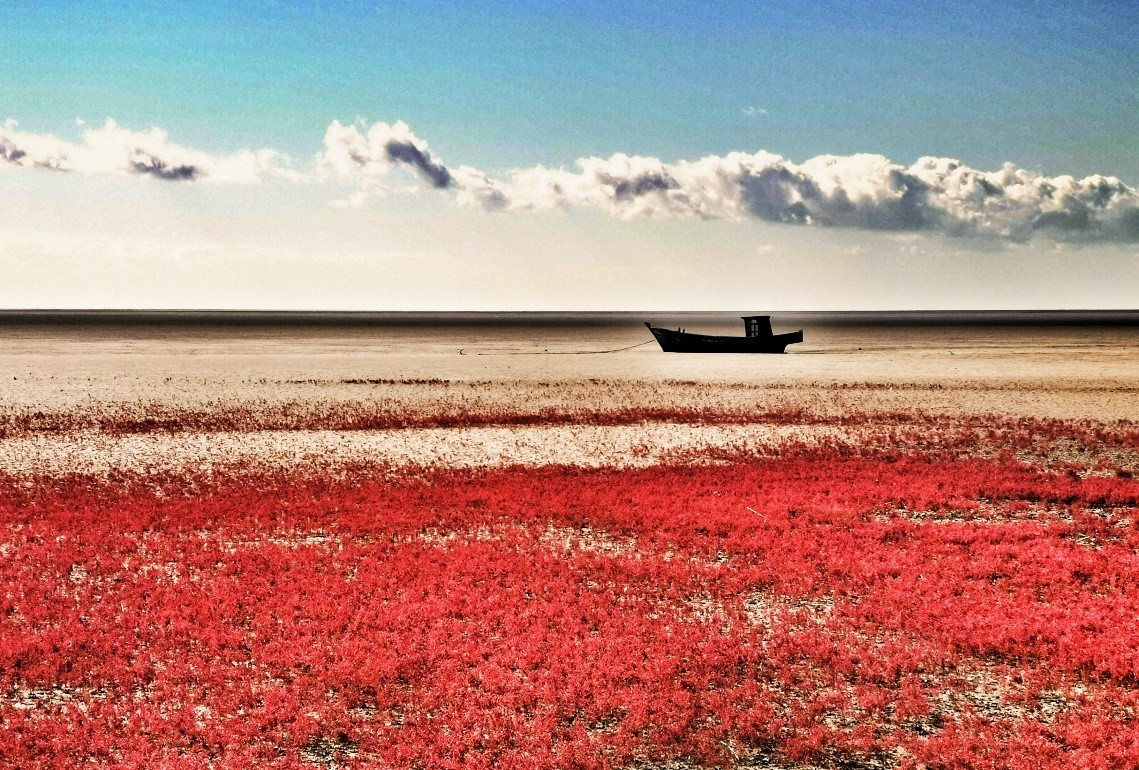 由于今年气候的不同,雨水大,辽宁盘锦红海滩的碱蓬草不仅红的早,红的鲜艳,而且面积超过了2万亩,较2018年增加了10倍以上,18公里风景廊道几乎全覆盖。 辽宁盘锦红海滩面积超过了2万亩 图/王国祺