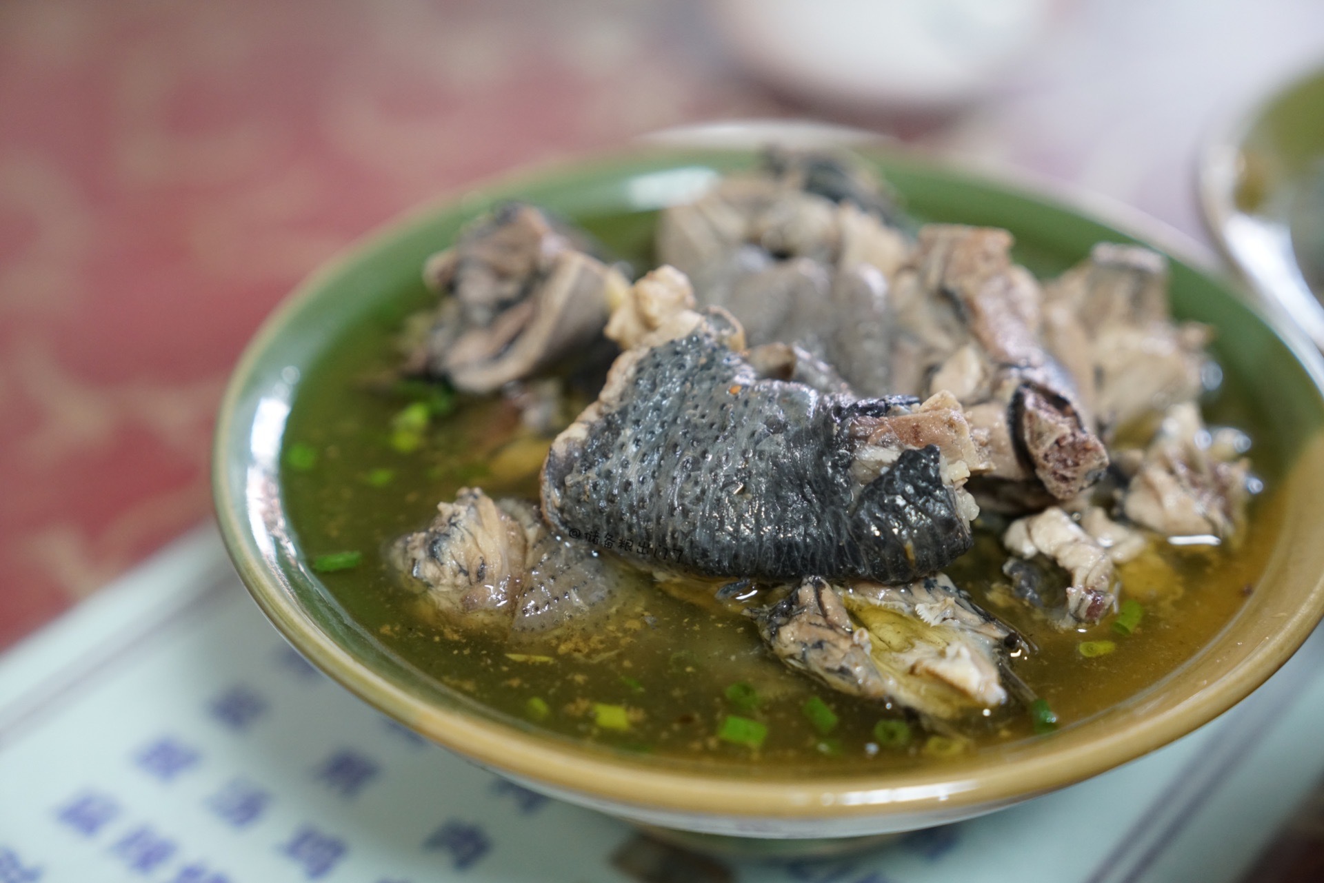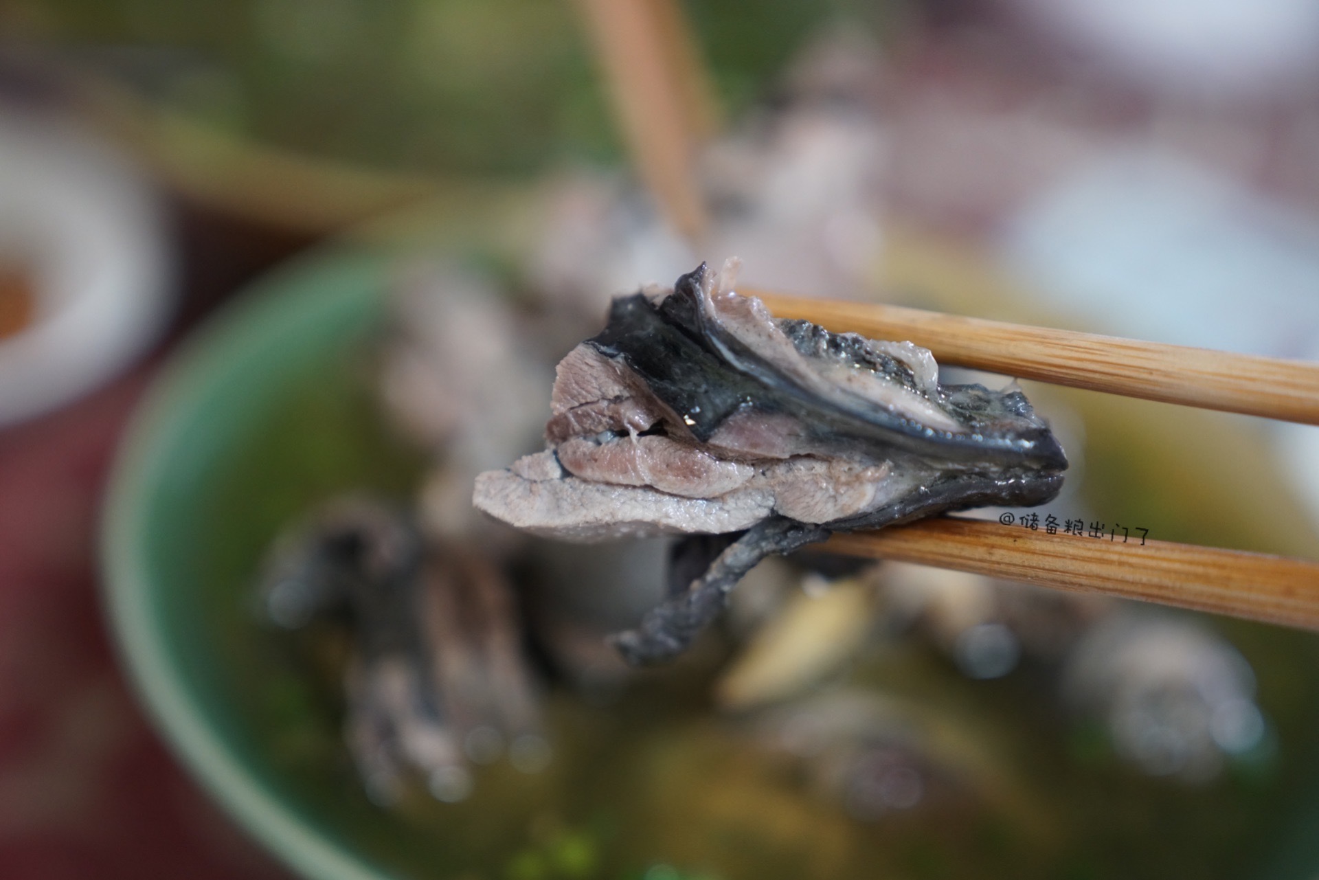 据说煮汤用的都是农家跑山鸡,食五谷杂粮、山涧飞虫长大。鸡肉是否鲜嫩也要看部位,常年健身跑山的溜达鸡肉比较紧实,蘸着糊辣椒面儿吃,但我觉得不如直接吃白味儿的。