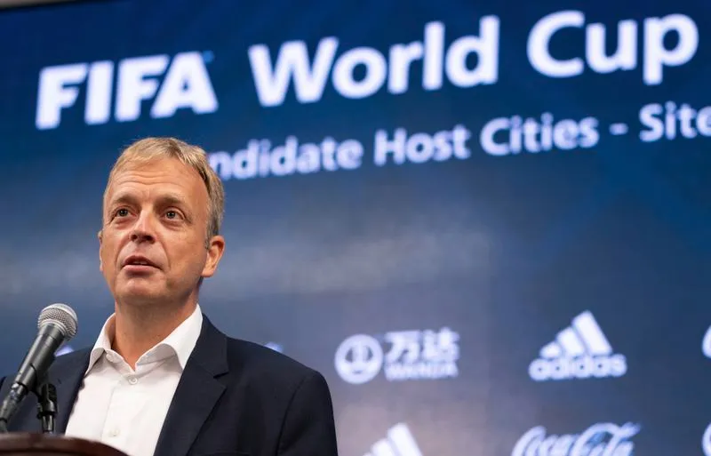 9月17日,国际足联赛事主管科林.史密斯(Colin Smith)在梅赛德斯-奔驰体育场举行的新闻发布会上。