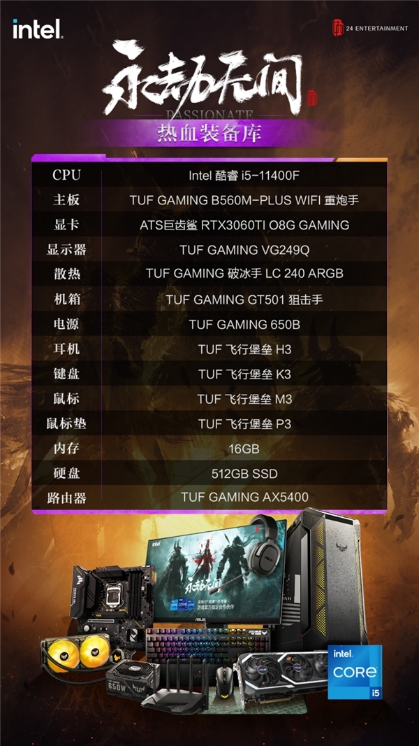 近日,《永劫无间》推出全新模式“武道争锋”。该模式全天不限时开放,每局共有16名玩家,游戏开始前,玩家需要选择自己本轮将要使用的英雄和武器,且直到决赛才能再次更换。玩家会在地图中的各个场地进行一对一的战斗,胜者将逐步晋级。最后在决赛三局两胜的规则中,决出最后的冠军。该模式的出现满足了许多喜欢单打独斗的玩家,让他们可以自由进行纯技术操作的游玩体验。不过,想要在战场脱颖而出绝非易事,空有一身技术可远远不够,一台性能强劲的主机是必不可少的,在此为玩家推荐三套双十一购物节不容错过的第十一代酷睿潮流电竞平台,分别是以华硕ROG MAXIMUS XIII HERO主板为核心,搭配Intel酷睿i9-11900KF处理器的“硬核装备库”套装;以华硕Z590吹雪主板(ROG STRIX Z590-A GAMING WIFI)为核心,搭配Intel酷睿i7-11700KF处理器的“高能装备库”套装;还有以华硕B560重炮手WIFI主板(TUF GAMING B560M-PLUS WIFI)为核心,搭配Intel酷睿i5-11400F处理器的“热血装备库”套装。上述三套电竞装备均为时下热门配置,性能强劲,让玩家轻松畅享各类3A大作,获得出色游戏体验。