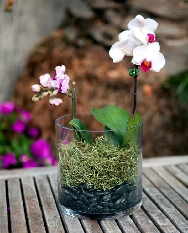 蝴蝶兰盆栽一般都会用水苔栽种,可以适当搭配些许泥炭土,如果水苔里有积水,它的根很容易腐烂发臭。
