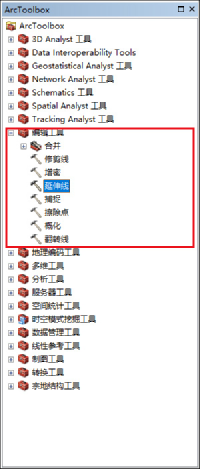 工具位于ArcToolbox-->编辑工具-->延伸线(ArcToolbox-->Editingtools-->Extendline)。
