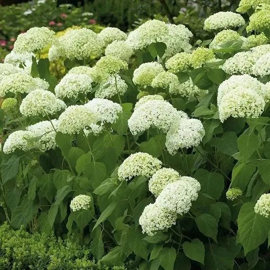 平常我们看到绣球花的花色通常是粉色或蓝色,也有很多白花和绿花的品种,就比如安娜贝尔绣球花就是有着白绿色的花朵,它的花色非常迷人,非常适合在用在半阴的院子里,每天有3~8小时左右的光照,就能让绣球花孕育花朵。