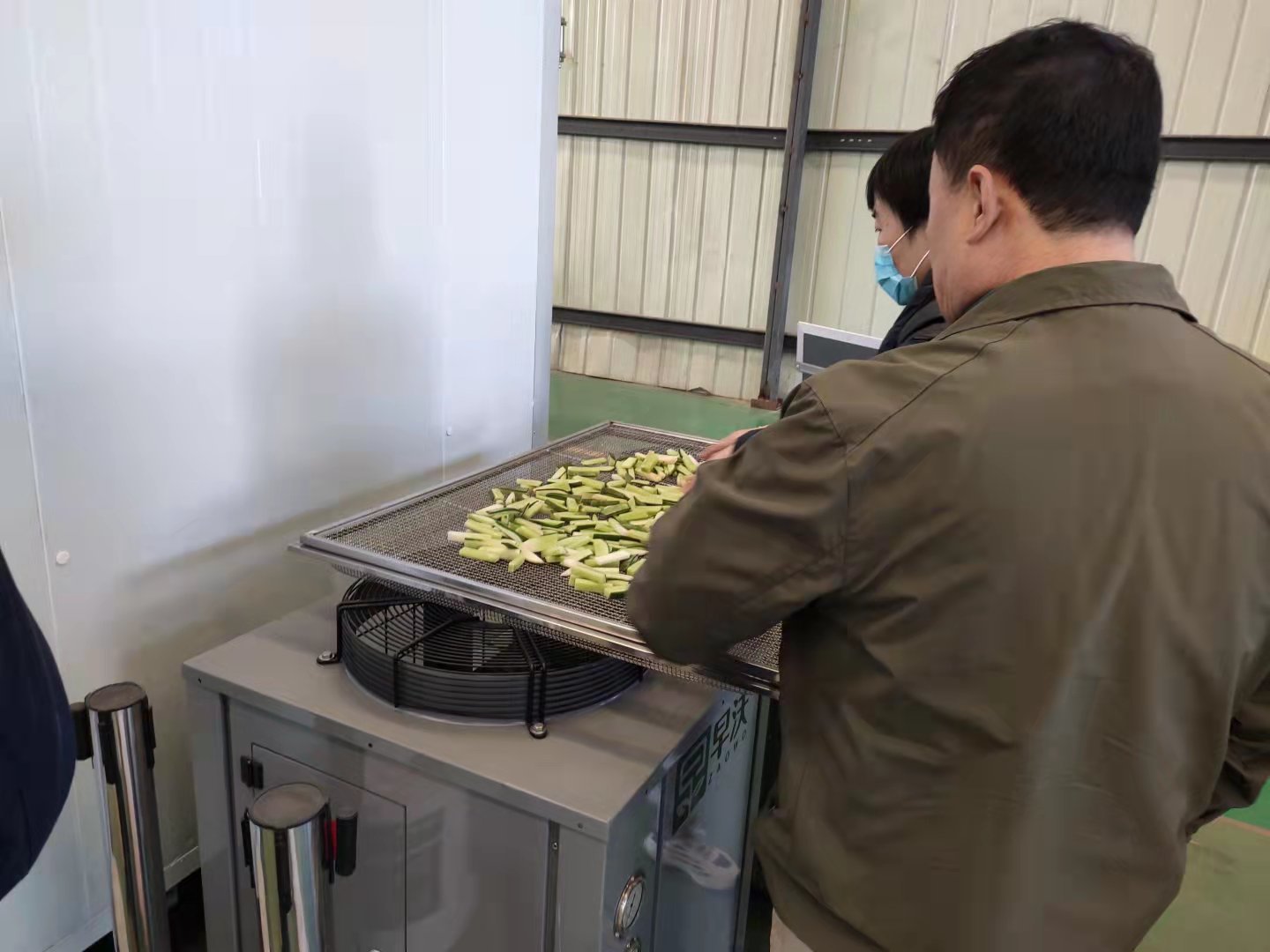 萝卜干:萝卜条推入萝卜干室,设定温度参数,启动萝卜干机。萝卜干衣机是一种新型的环保和节能的干燥设备,其工作原理是基于逆卡诺循环原理,使用少量的电能,使用压缩机工作,膨胀阀后的工质在蒸发器蒸发成气体,和大量吸收空气中的热量,气态介质通过压缩机压缩成高温高压气体,然后进入冷凝器的热量(干燥箱)干燥箱可以需要干萝卜干加热,加热的连续循环,最后萝卜干。