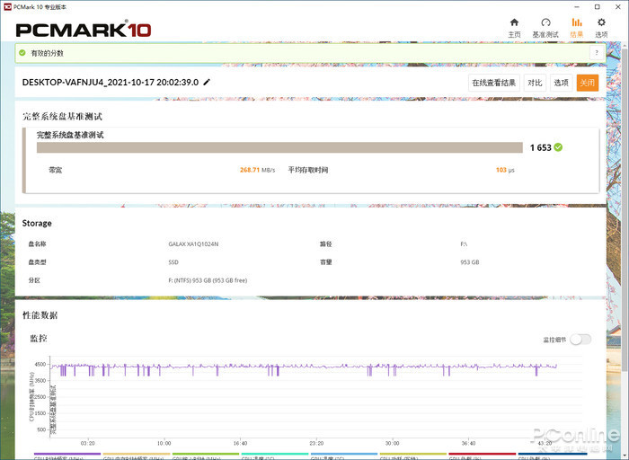 在快速系统盘基准测试中,影驰星曜M.2 SSD 1TB永劫无间版固态硬盘的成绩为1686,完整系统盘测试的成绩为1653,作为日常的电脑系统盘使用还是不错的。