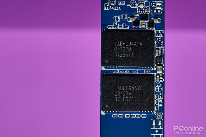 NAND颗粒为群联自封颗粒,颗粒编号为IABHG94AYA,单颗容量为500GB,两颗NAND颗粒组成1TB的硬盘容量。
