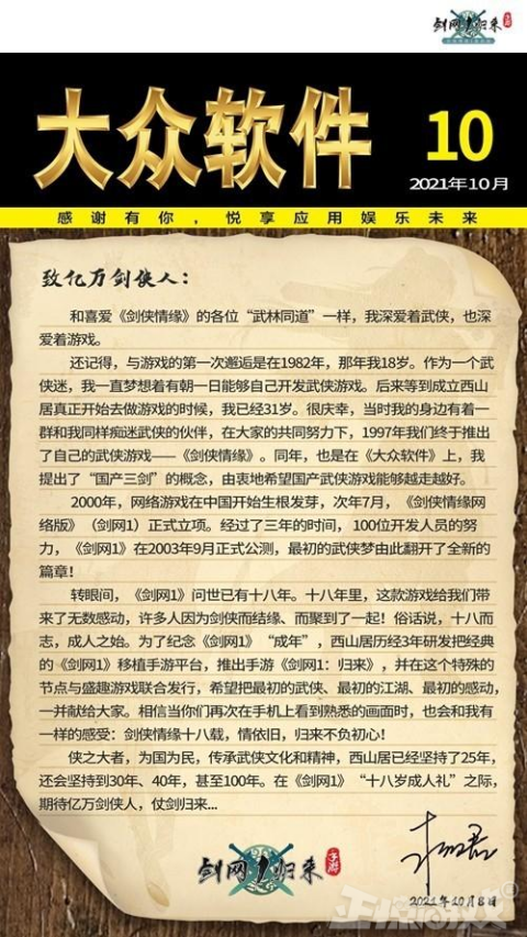 沉寂多年后求伯君最近又活跃了起来,以《剑侠情缘网络版》为蓝本的《剑网1:归来》手游于10月15日正式公测,或许是对帮助他们渡过难关的《剑侠情缘》有所怀念,求伯君罕见地站了出来为《剑网1:归来》发起了呼声,致敬了各位中国的剑侠人。