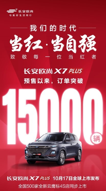 国货当自强,自主当自信!自长安欧尚X7PLUS于8月27日开启全球预售至10月15日,其累计订单量已经突破15000辆。每一份用户心选,都是长安欧尚X7PLUS当红实力的认可,也是国货崛起带来的信赖。