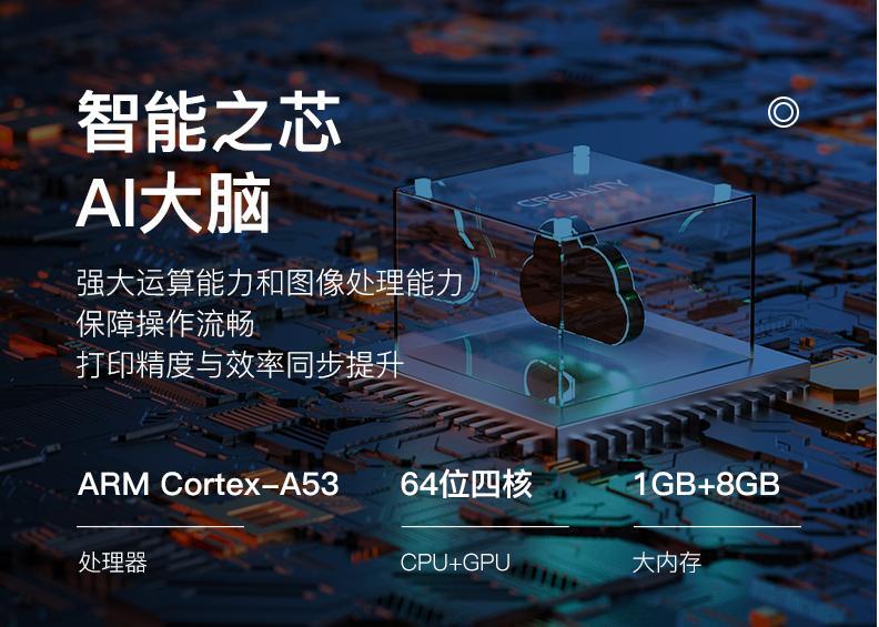 创想三维一直致力于将3D打印智能化,HALOT-LITE搭载了ARM Cortex-A53处理器,64位四核高性能主板,拥有远超普通光固化3D打印机的运算能力和图形处理能力,打印精度与效率显著提升。内置WIFI模块,能够清晰地掌握3D打印机的工作状态和打印进展,还能支持一键系统更新、功能迭代、应用升级等功能应用。