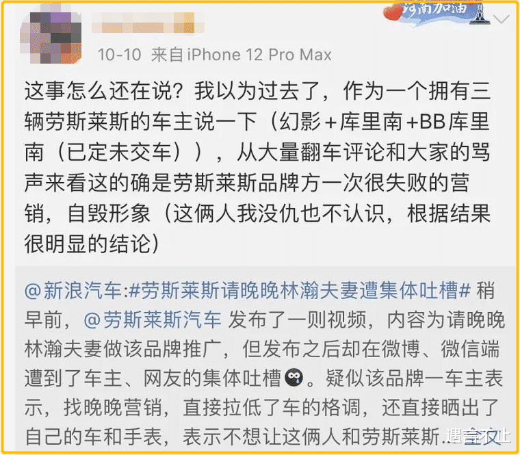 2000多条留言,一半骂晚晚夫妇,一半骂劳斯莱斯,场面好生热闹。