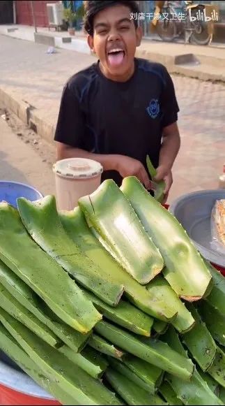 做芦荟汁的“老小子”正在睡觉,刘庸就给他扒拉起来,他家的芦荟汁是最黏的。俩人握握手,刘庸说,老朋友相见格外开心,刘庸还与有荣焉地介绍道,这小子有个独门绝技,可以手断芦荟: