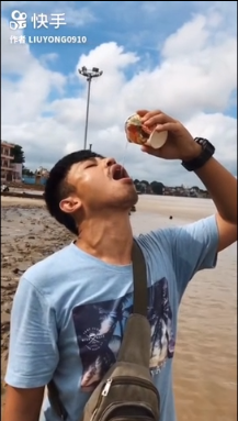 他最出名的视频则是在街头喝芦荟汁。