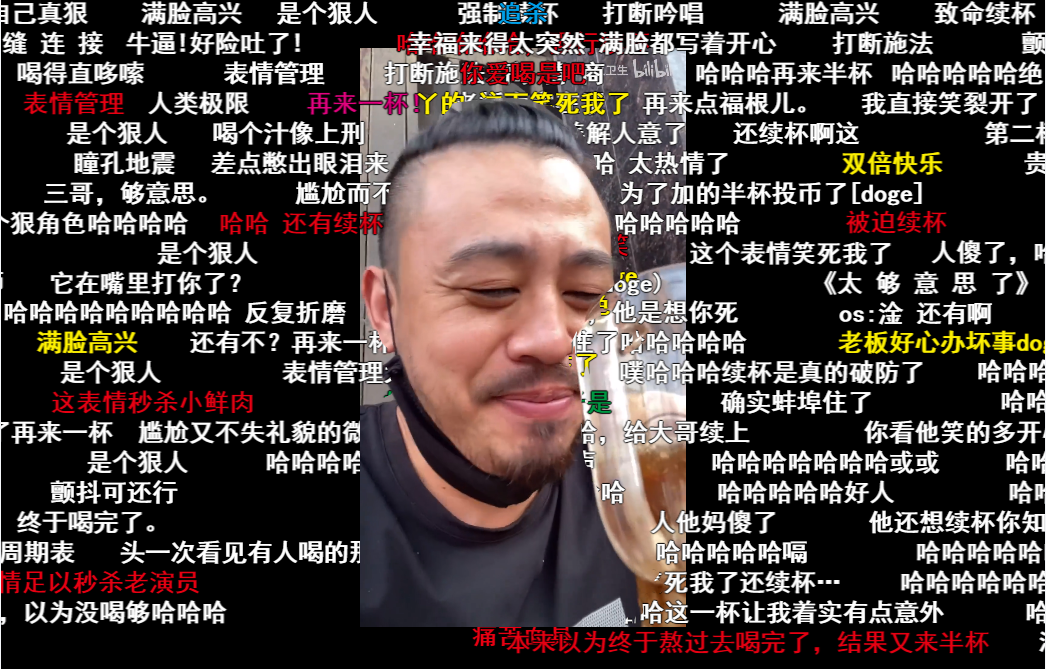 坐下后,他举起一大桶水就喝,弹幕纷纷调侃: