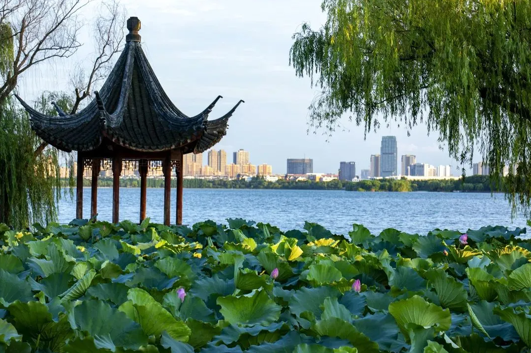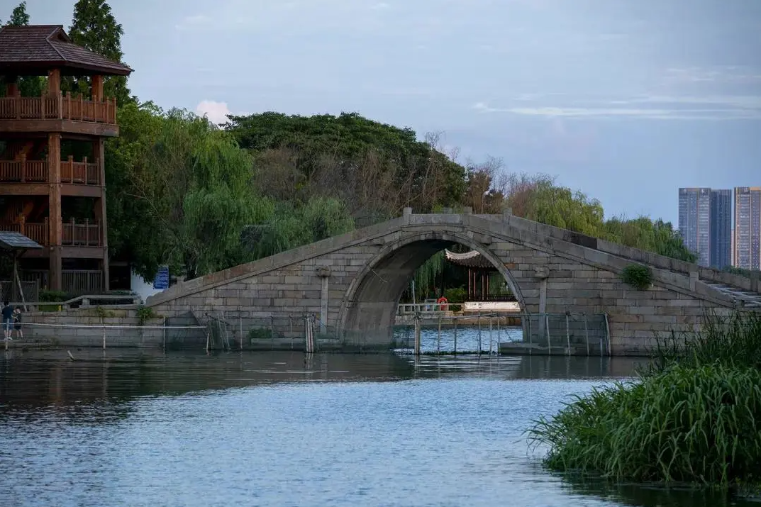石湖佳山水,五堤倚运河,石湖景观为后世留下宝贵财富,在大运河水的浸润与滋养下,湖山相映,塔影画桥,交织成一幅江南山水画卷。(胡怡)