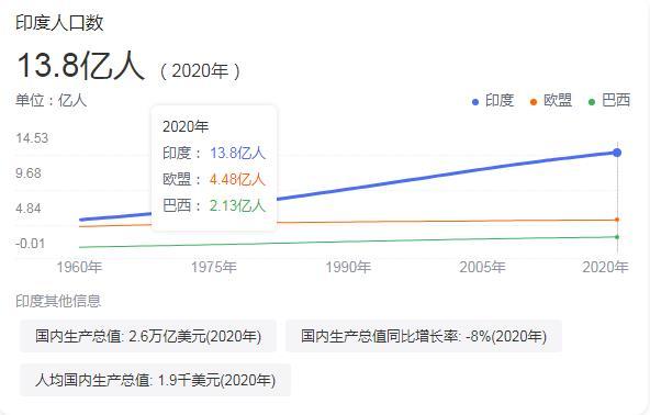 我发现很多国人似乎也小瞧了印度,真正的印度确实算得上大国,跟中国一样庞大的人口以及更加合理的人口结构。截止到2020年,印度人口达到了13亿8000万。印度的地理位置也很优越,可以毫不夸张的说是印度成就了昔日的日不落帝国。印度洋号称世界的十字路口,地理位置那是相当重要。印度甚至把印度洋看做自己的内海,毕竟印度洋周边除了印度没有强国了。