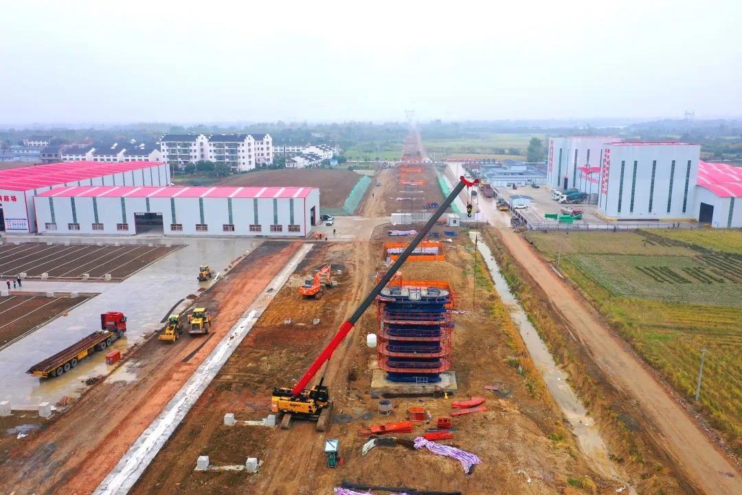 荆荆铁路四标段线路跨越G50沪渝高速、318国道、江汉运河及汉宜铁路,全长12.199公里,标段项目总投资17.3亿元。施工工期为三年半。自今年6月底进场施工以来进展顺利,预计2022年8月开始架梁,2023年9月开始铺轨。