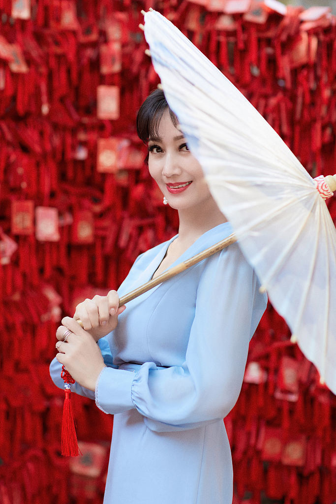 近日,赵雅芝的一组写真释出,她撑油纸伞笑容怡人,蓝裙优雅真·冻龄女神。