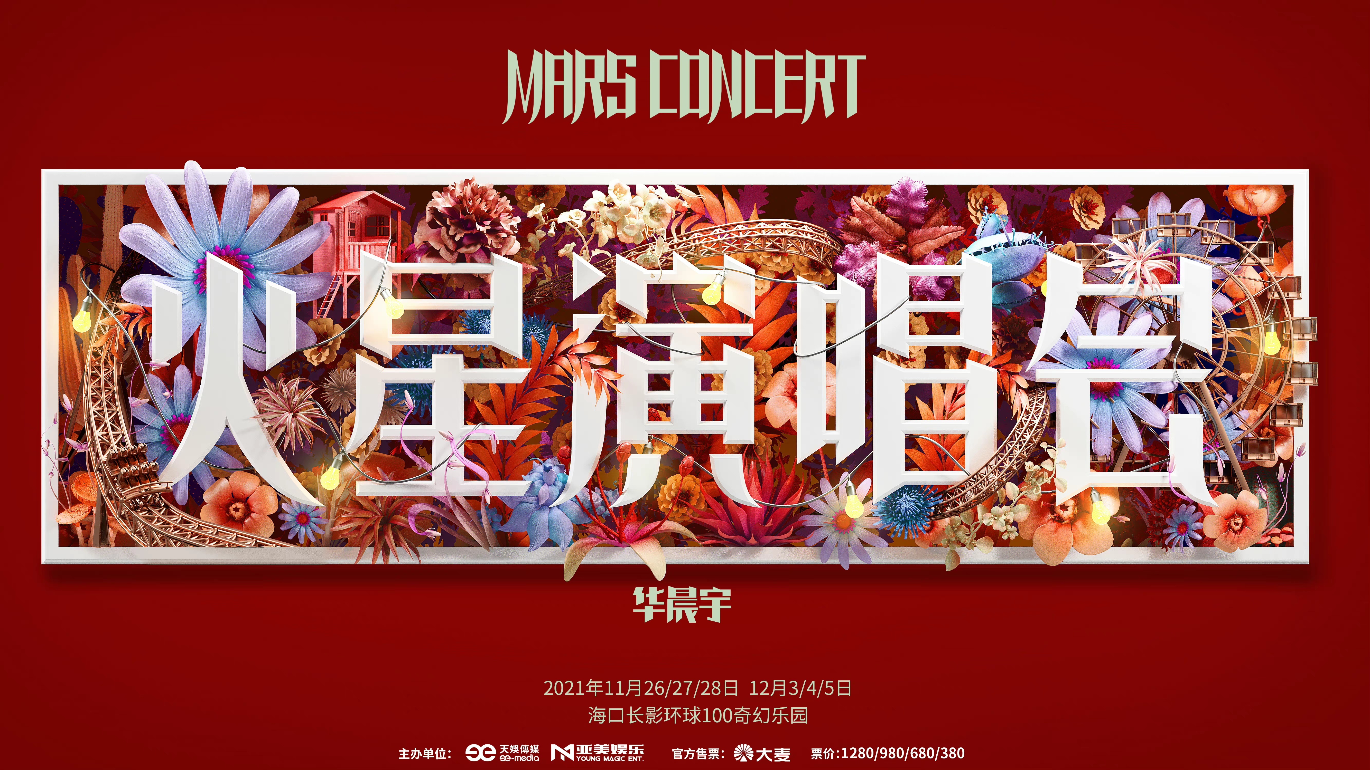 重温着2019火星演唱会的视听享受,2021火星演唱会也将于11月26/27/28、12月3/4/5日在海口长影环球100奇幻乐园举办,首周预售将于10月30开启,你准备好去现场享受一场沉浸式的“火星乐园之旅”了吗?