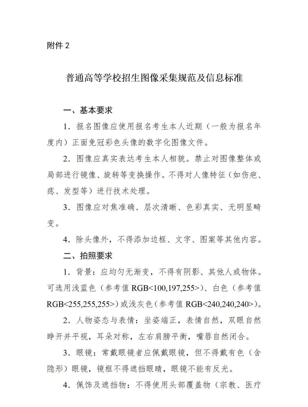 2.普通高等学校招生图像采集规范及信息标准