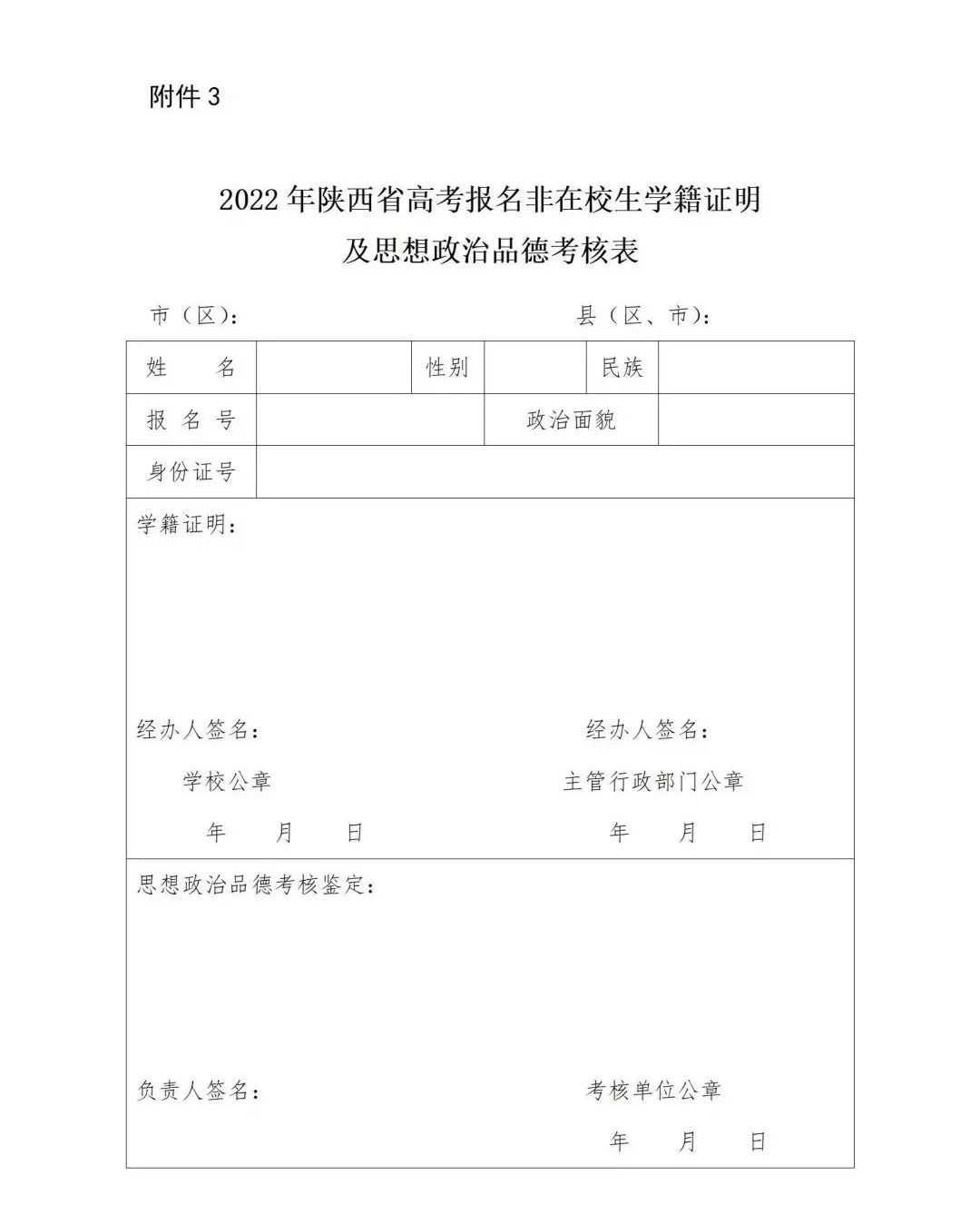 3.2022年陕西省高考报名非在校生学籍证明及思想政治品德考核表