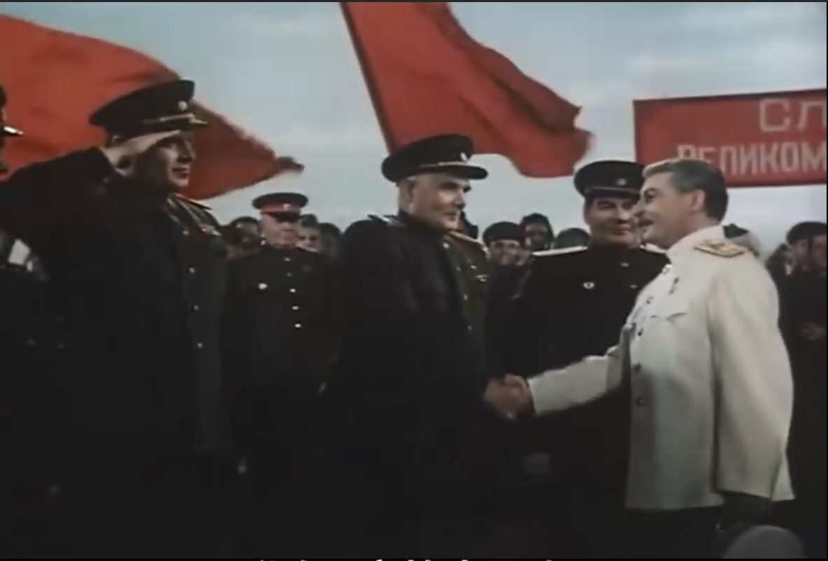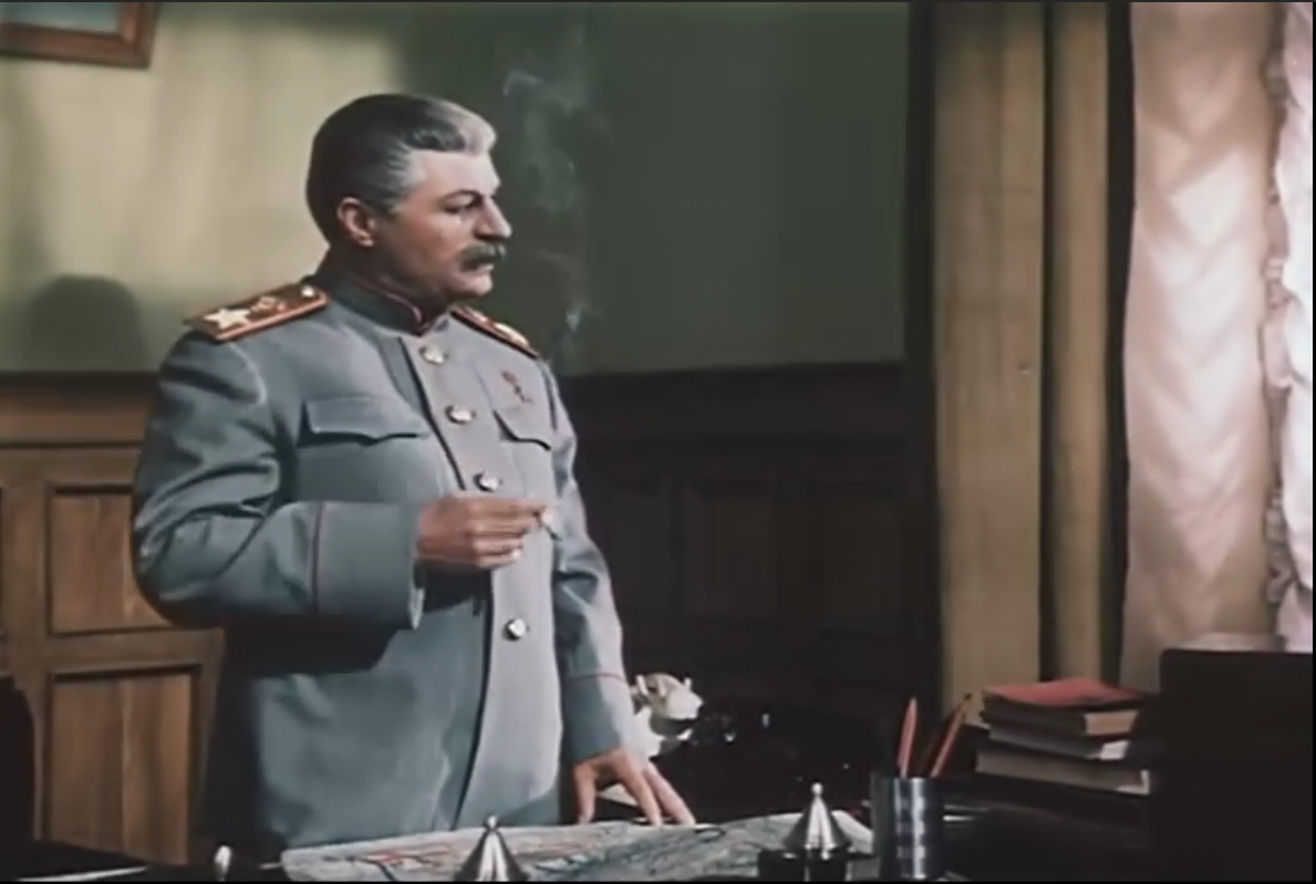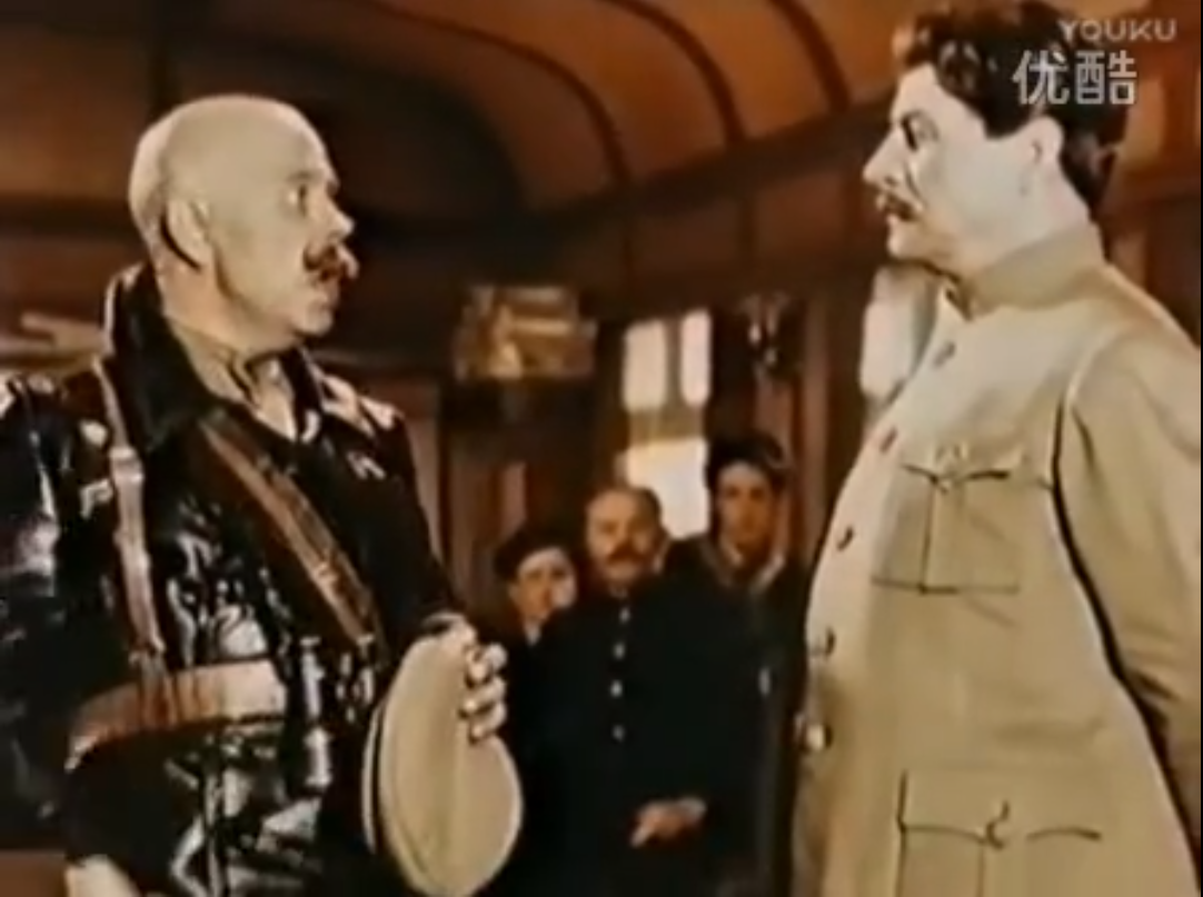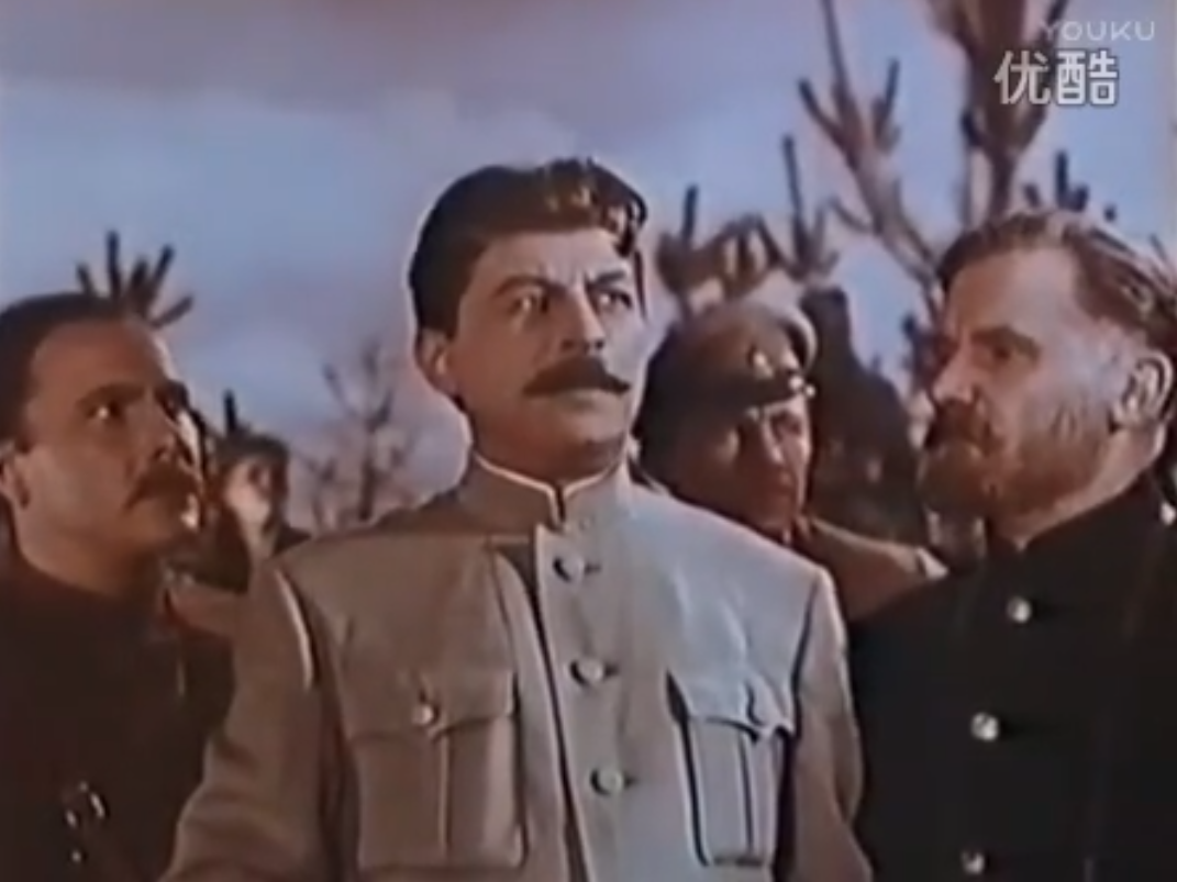今天我们回顾一下,斯大林形象在苏联银幕上,并没有中止,后来还是继续散发着他的独特的光彩,一直不断地有着斯大林形象在苏联银幕上出现,包括《莫斯科保卫战》、《解放》、《围困》、《胜利》中,都有着斯大林的角色形象。