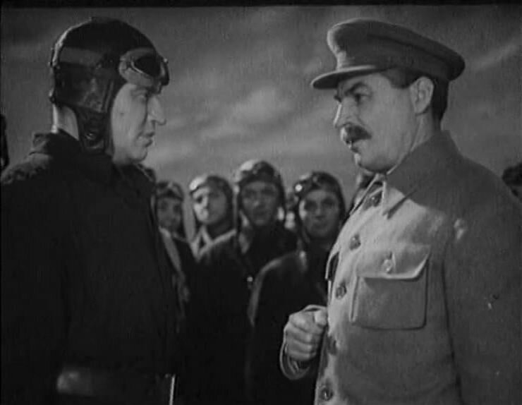 影片中顺带表现斯大林亲自过问飞行员的试飞情况,并提出指导性意见。