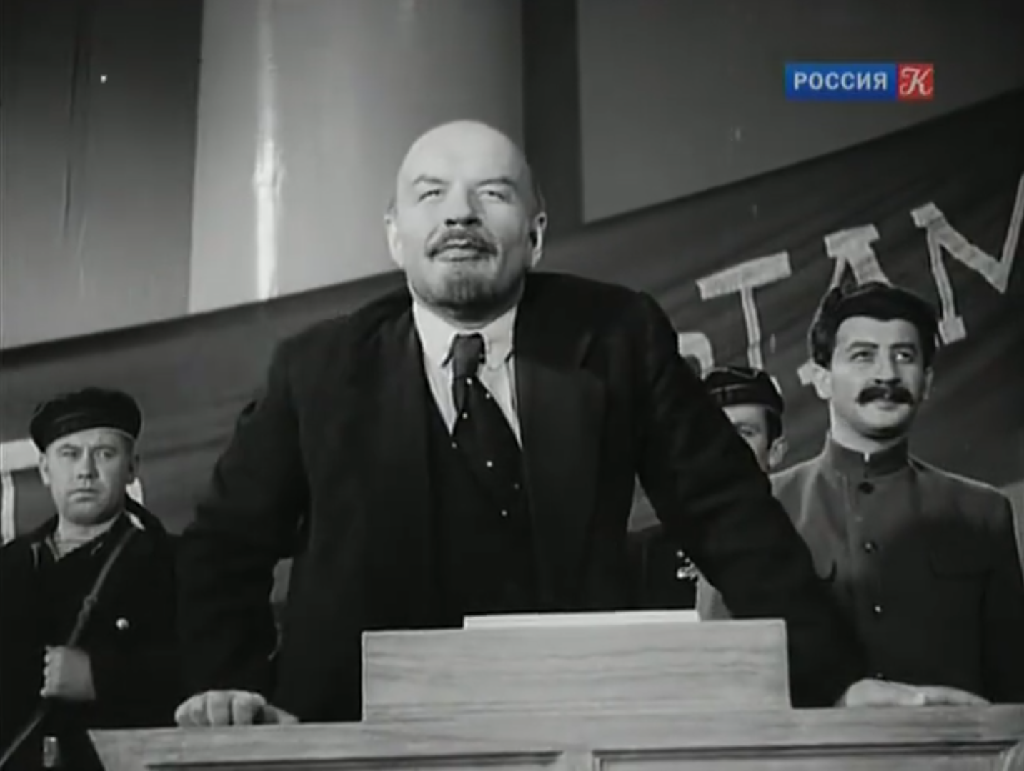 在苏联导演爱森斯坦拍摄的《十月》中,出现了一个列宁演讲的远镜头,算是领袖形象首次走上了银幕,但只是一个朦胧的身影,基本没有人物的形象塑造。