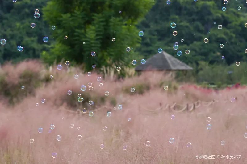 园区内还有泡泡制造机,七彩朦胧的泡泡,在花海中飞舞。