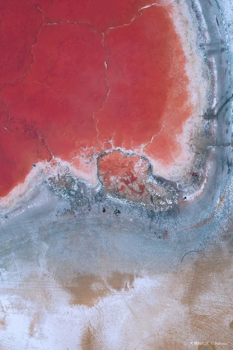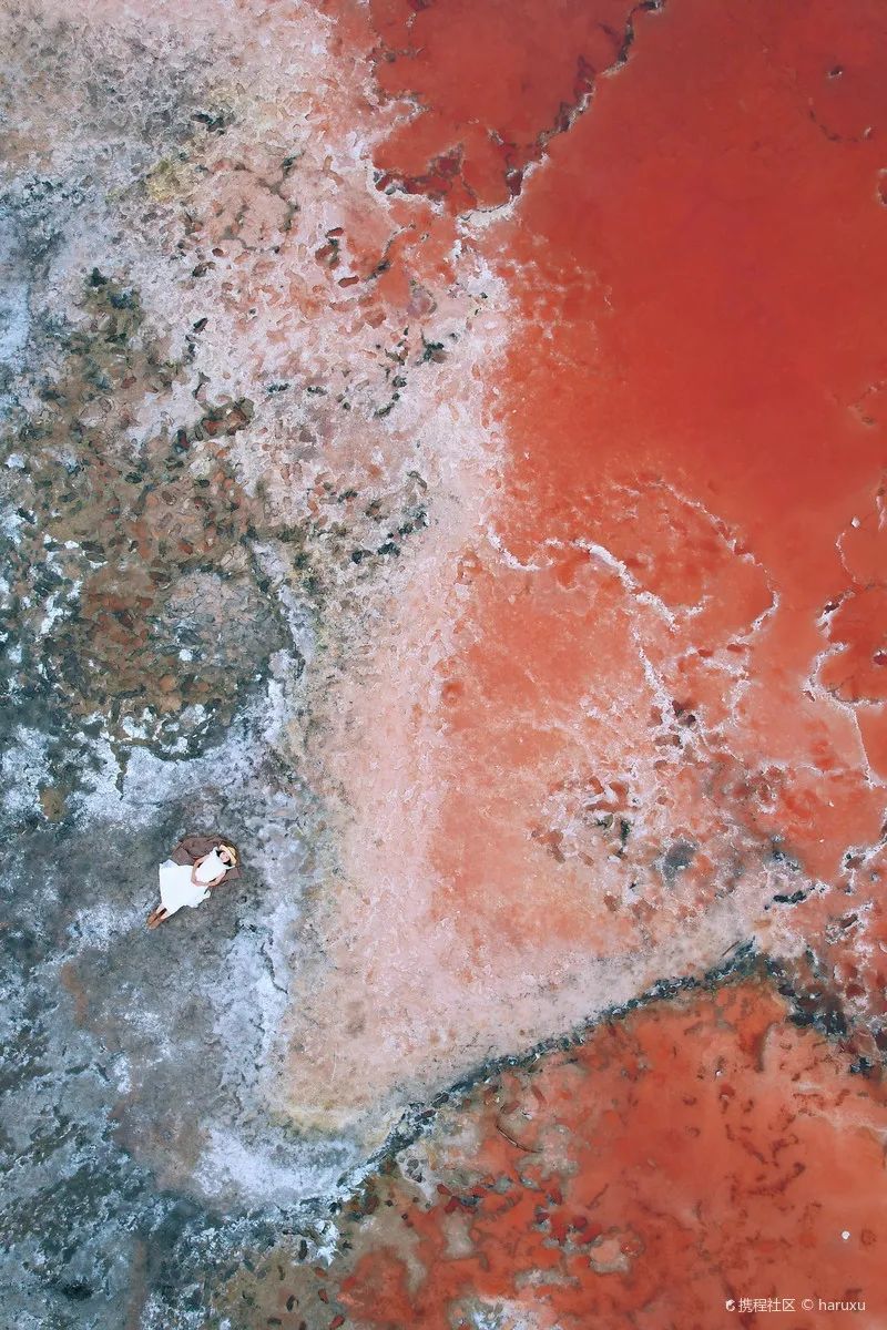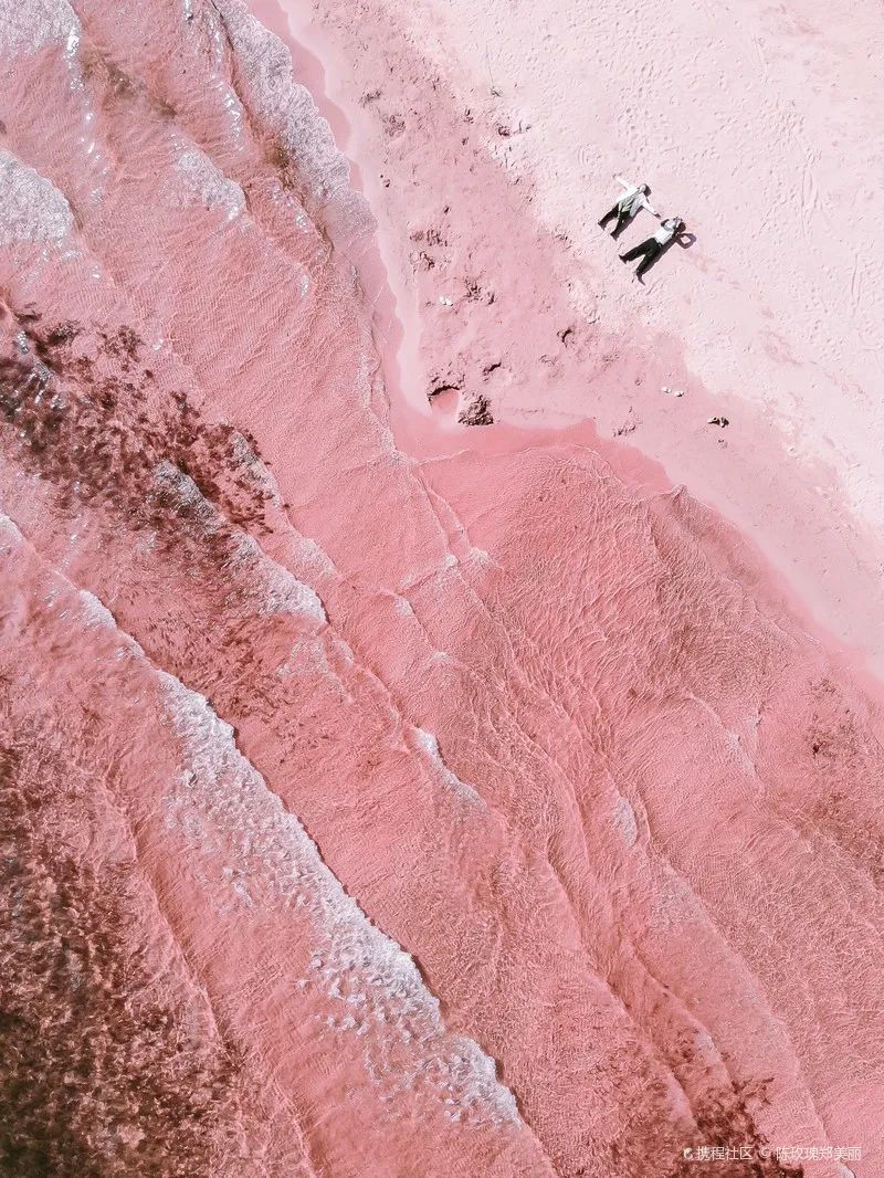 粉红色的湖泊闪耀着迷人色彩,仿若“沙漠之眼”,走进湖中高地,用上帝视角拍照,大片既视感!