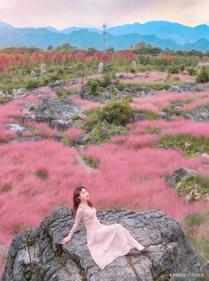 酉阳的叠石花谷一到秋季便美成了粉色仙境,随处可见的叠层石,漫山遍野的粉黛乱子草盛开,这粉粉嫩嫩的颜色简直太治愈了!