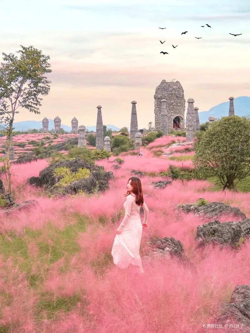 “回眸一笑百媚生,六宫粉黛无颜色”,每一片粉黛花海都是一个少女心爆棚的美梦,如云似雾。