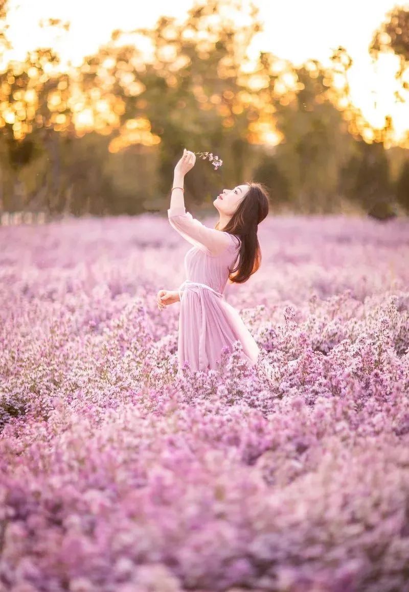 着装建议白色或粉色裙装,以山坡上的花为背景,或走上山头拍摄绵延花海,或蹲坐在花丛中,很有法式少女的感觉~