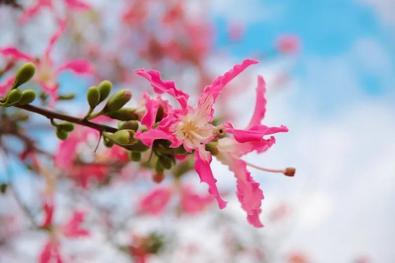 开在秋天的粉色樱花最梦幻,可以在萧瑟的秋季让人感受到春天的浪漫与欢喜。粉红的花朵层层盛开,婀娜多姿,绚丽耀目。