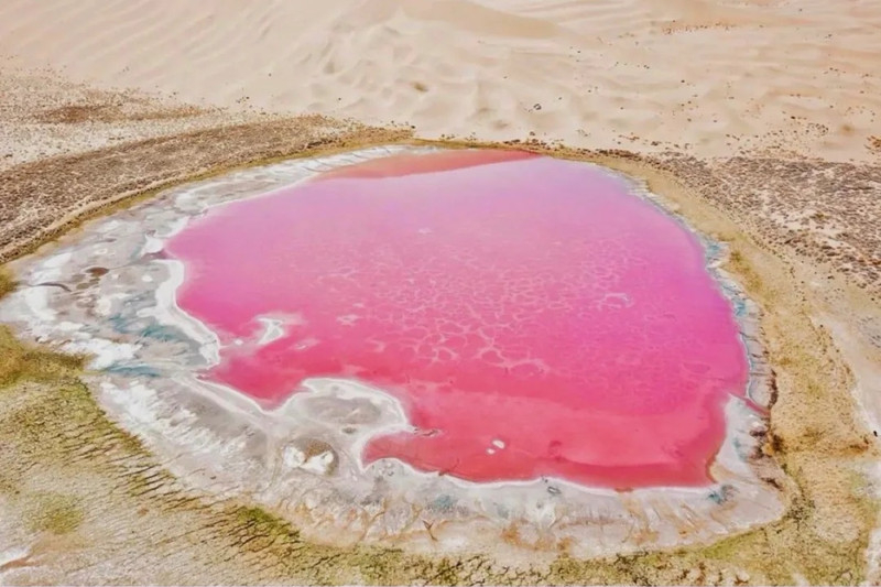 不用出国,在中国最美沙漠巴丹吉林沙漠里,就能近距离感受到不加滤镜的粉色湖泊。