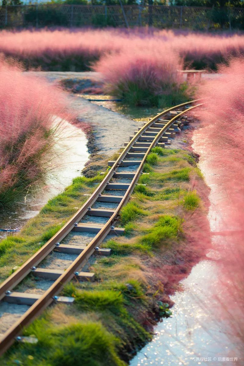 而这片少女的“粉色”是一种叫 粉黛子 的植物, 花期从9月一直持续到11月中旬,如今正是黄金观赏期 ,微风吹过,摇晃的粉黛乱子草卷起轻盈的波浪, 像一层层粉色的浪花 ,超有氛围感!