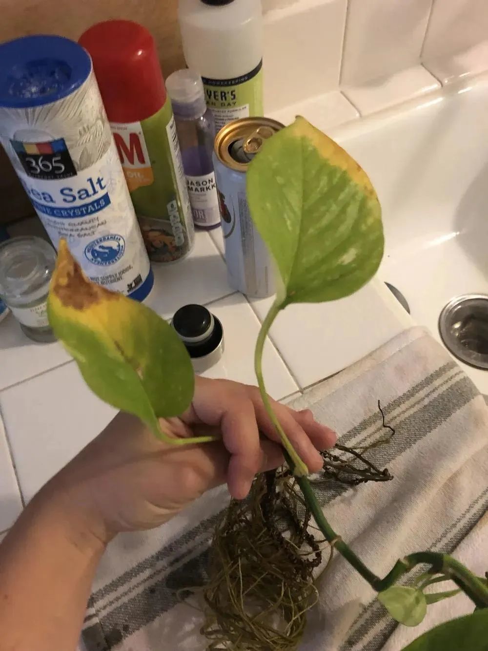 上图为黄叶的水培绿萝