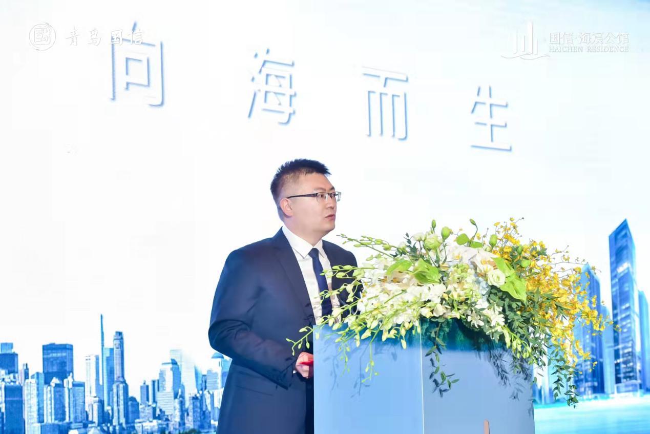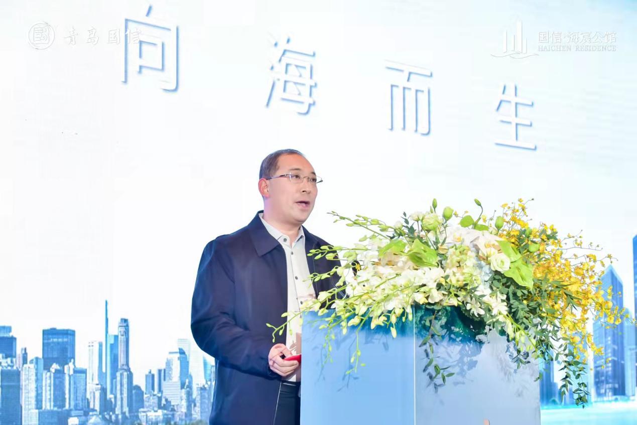 青岛国信融科发展有限公司总经理郑建毅先生,在发布会上阐述了青岛国信在同步城市建设的过程中所担负的责任与态度,为发布会开篇。青岛国信集团33年历程始终清晰可见,以至高标准,匠造一个又一个具有时代意义的城市地标。