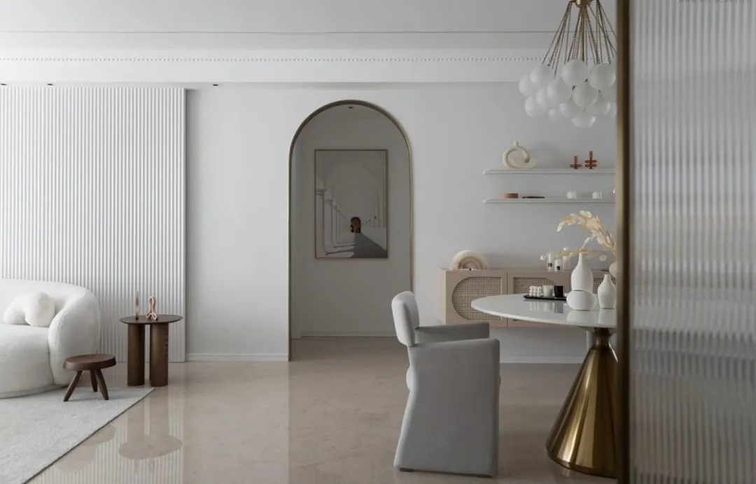 ▲餐厅与客厅之间的过道,以拱形门洞造型,墙面挂一幅立体感的建筑风装饰画,使得过道空间有着一种视觉延伸的错觉,放大了角落空间的视觉感。