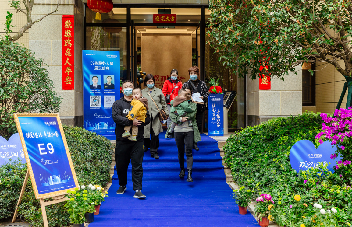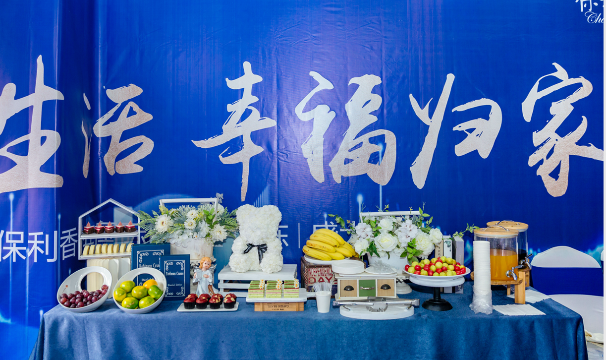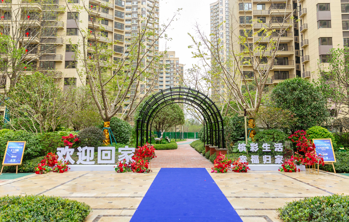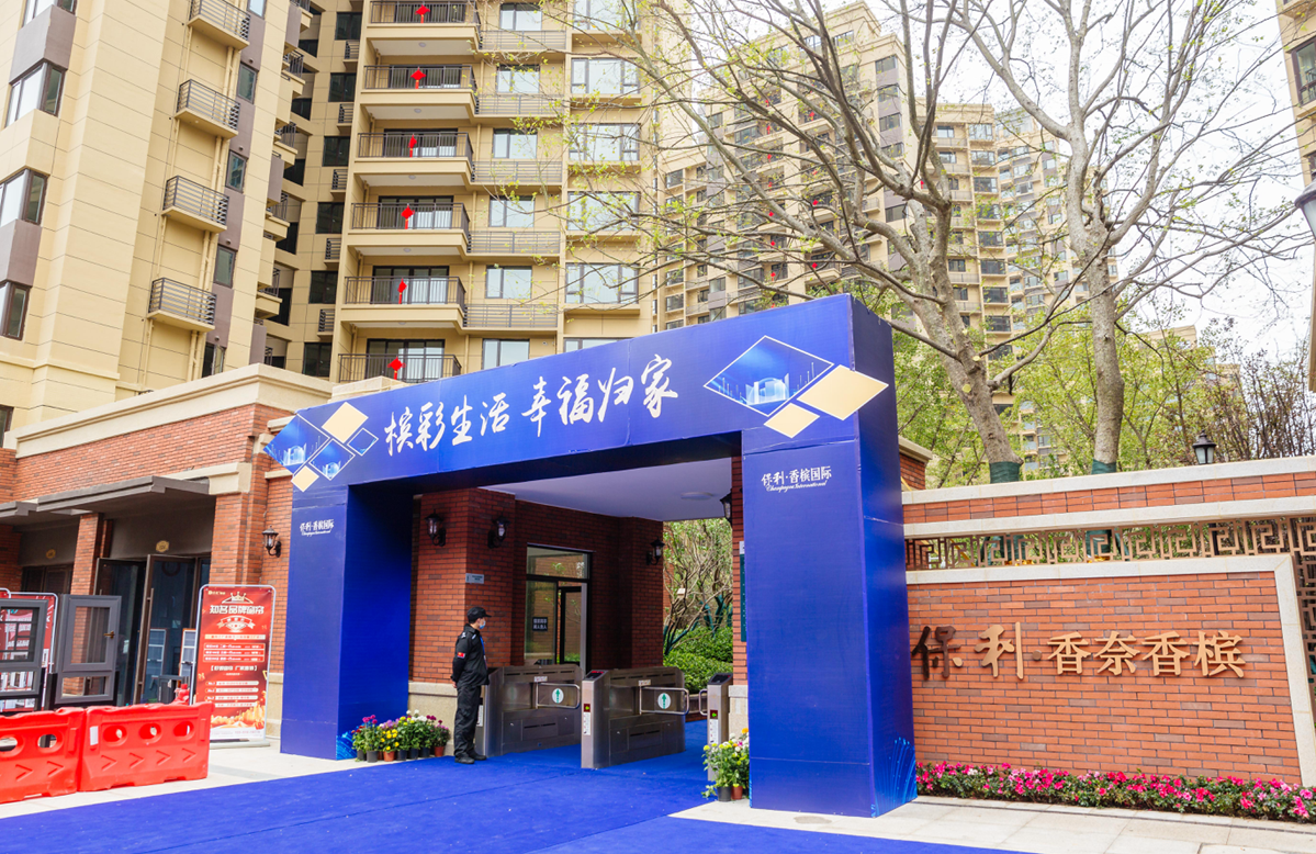 乐居从现场可以看到,保利香槟国际为此次交付活动做了精心的布置,小区门口以及小区内做了大型“滨彩生活 幸福归家”的拱门和鲜花点缀,现场摆放有精美茶歇。