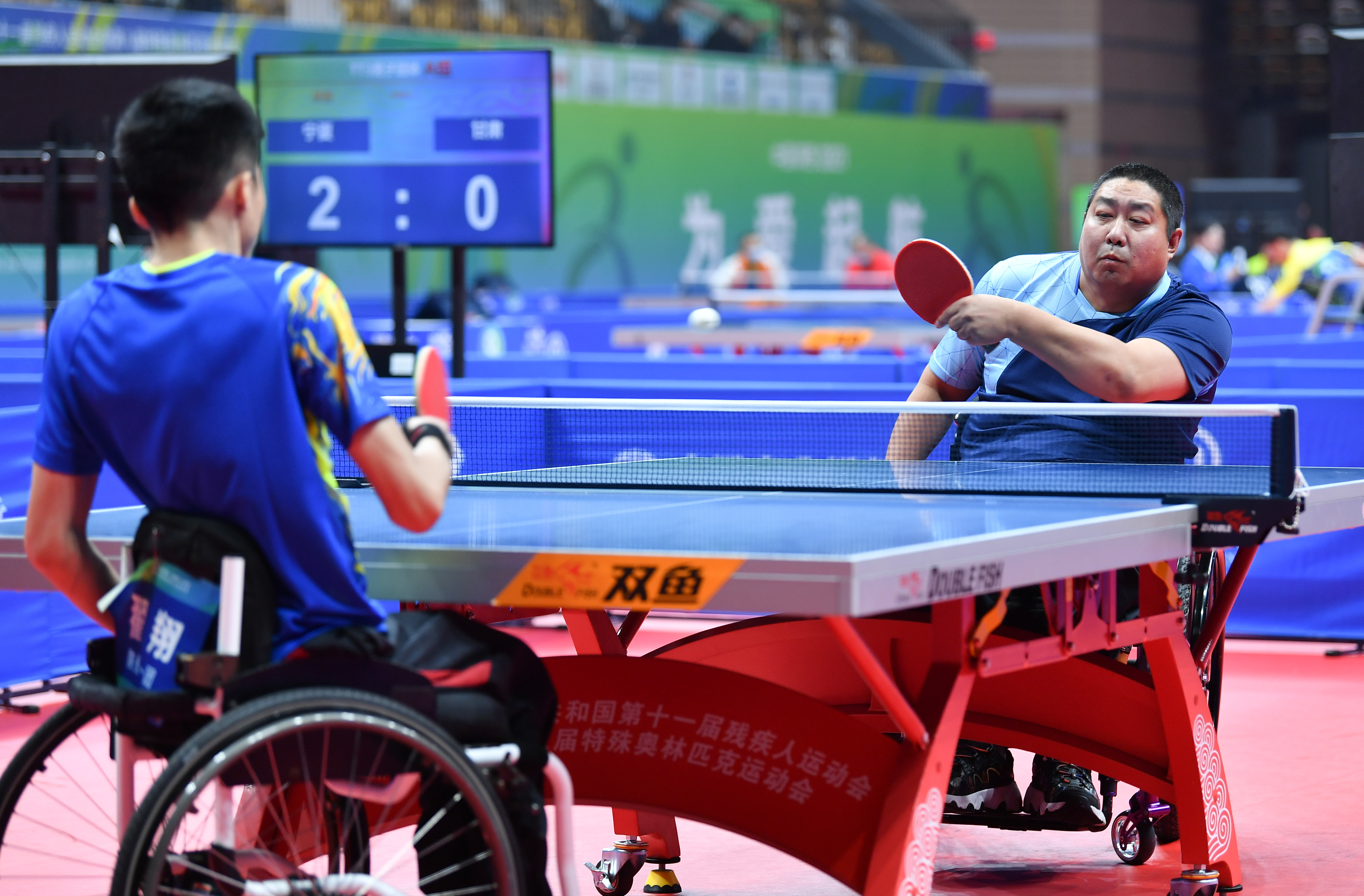 当日,在全国第十一届残运会暨第八届特奥会乒乓球TT3级男子团体小组赛A组比赛中,黑龙江队对阵河南/陕西一队。