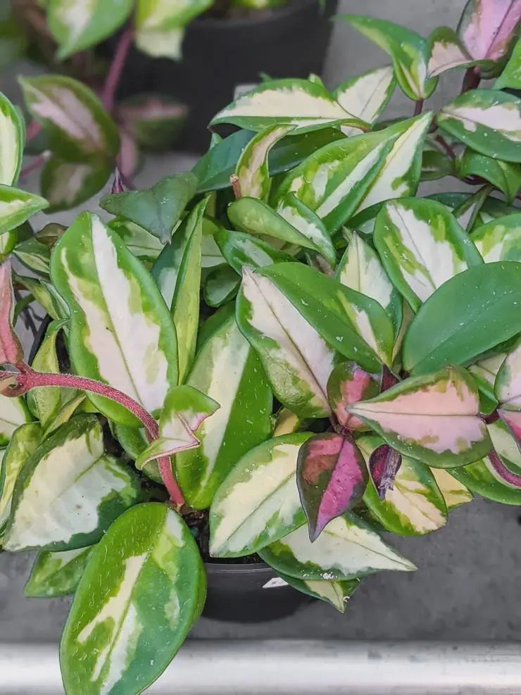 白缘球兰是叶子非常靓丽的一种球兰品种,它的叶片会刚开始长出来的时候是特别好看的,但要注意叶子呈白色的锦化叶子是无法进行光合作用的,等叶子慢慢长大后,叶片锦化的部分会越来越少,就只剩下叶子的边缘还是白色的,而叶子中心处则是翠绿的,这也是白脉球兰的特点。