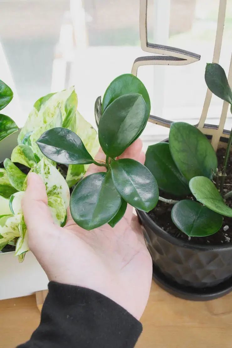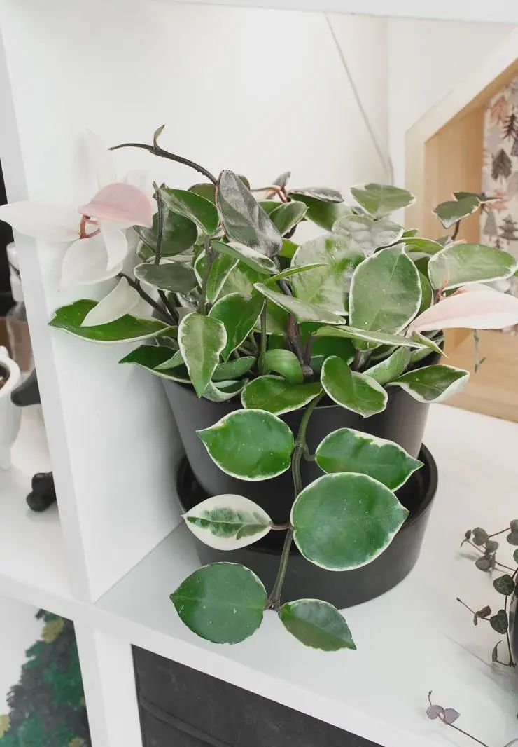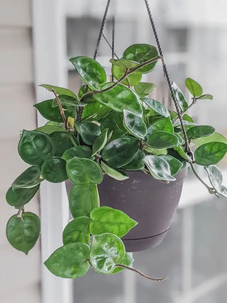 澳洲球兰的叶子特别有光泽,叶片看起来是比较圆润的,也显得更加可爱,它的叶子会低垂生长,茎也会交织生长在一起。
