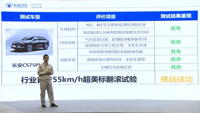 但但但但是!就在前天,我在长安汽车的微博上刷到了75P进行了一场翻滚试验,就是车辆先被高速抛出,然后猛烈得砸在地上并且再翻滚好几圈。我之前对车辆的安全测试有一点了解,但是翻滚的试验还是头一次听说,后来知道这是美国才有的测试项目,可以想见75P在安全性能上是有国际前瞻性追求的。